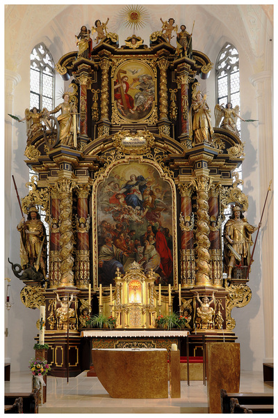 Im Zentrum des Ortes Vöcklamarkt steht die große Pfarrkirche, die Ende des 15. Jahrhunderts im Stil der Spätgotik errichtet wurde und deren markanter Turm mit dem Doppelzwiebelhelm zu den höchsten Kirchentürmen Oberösterreichs zählt. Im 17./18. Jahrhundert wurde das Kircheninnere im Stil des Barocks umgestaltet. Zuletzt wurde die Pfarrkirche 2016 renoviert. Dabei erhielten die liturgischen Orte im Altarraum eine zeitgenössische Gestaltung. Der Dom des Vöcklatals, wie die Pfarrkirche ob ihrer Größe gerne genannt wird, ist der Himmelfahrt Marias geweiht (Patrozinium am 15. August).