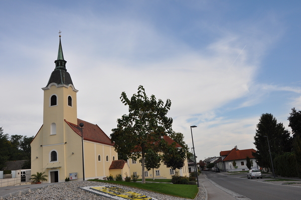 Die Kirche, ein barockes Saalgebäude mit eingezogenem Chor, liegt markant auf einer kleinen Anhöhe am westlichen Ortsrand. Der dreigeschoßige Westturm mit Spitzhelm, das schlichte Äußere und der ummauerte Friedhof verleihen dem Kirchenensemble ein traditionsreiches und ruhiges Ambiente. Im Inneren beeindruckt das Stichkappentonnengewölbe, getragen von harmonisch eingefügten Gurtbögen, sowie die hölzerne Westempore auf gusseisernen Säulen. Der klassizistische Hochaltar mit dem Bild des heiligen Florian bildet den liturgischen Mittelpunkt des Raumes.