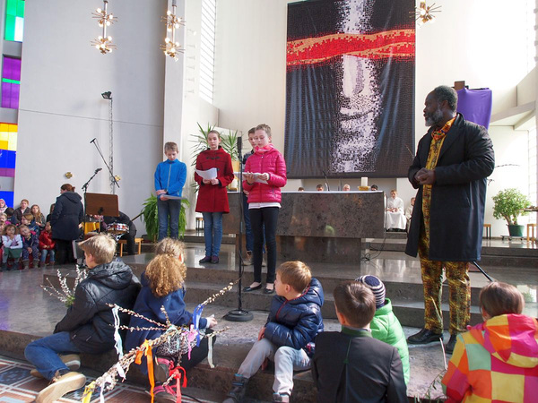 Es singt der Gospelchor, die Familienband unter der Leitung des Pastoralreferenten Jack Brew und Volk mit Orgelbegleitung aus dem Gotteslob mit dem Organisten Norbert Kreinz.