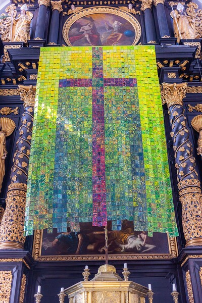 Der mächtige Hochaltar ist eine Stiftung des Salzburger Erzbischofs Maximilian Gandolph von Khuenburg und wurde 1667 geweiht. Das Altarbild von Johann Heinrich Schönfeld zeigt die Apotheose des Hl. Franz Xaver. Flankiert wird das Bild innen von den Aposteln Petrus und Paulus und außen vom Hl. Rupert und Hl. Virgil. Diese genannten Figuren, wie auch die imposanten Apostelstatuen stammen von den Leobener Bildhauern Ägidius Meixner und Jakob Walch.