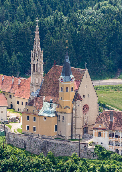 zählt zu den bedeutendsten Sakralbauten der Hochgotik in Österreich. Die Anfänge des Wallfahrtsortes reichen ins 12. Jh. zurück. Der Grundstein wurde 1346 gelegt. Der 48 m hohe Turm weist eine reiche Symbolik auf. Das Gnadenbild Maria im Ährenkleid (1430/40) und das Wurzelkreuz sind Anziehungspunkte für Wallfahrer. Sehenswert sind die gotischen Glasfenster.